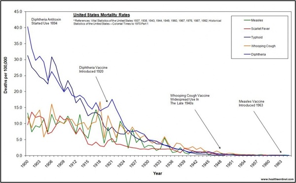 ![]() (link to here) Let's take a moment to consider the hope and faith of those that suggest that vaccines saved humanity from dread diseases. In reality we can see that a couple of these were down 98 & 99% before the vaccine ever came out, thanks to increasingly clean water and sewage treatment. For other diseases that went down at similar rates, no vaccine was ever administered: