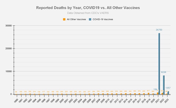 ![]() Yet the long-awaited "vaccine" that neither prevented infection nor transmission of COVID-19 was responsible for more deaths, than all other vaccines combined, since the VAERS system began collecting data.